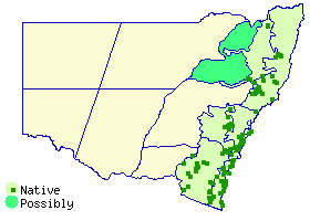 Distribution and occurrence: Widespread in eastern NSW Grows in forest and coastal scrub.