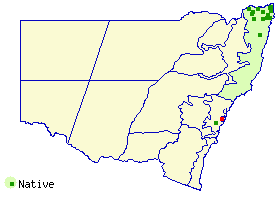 Distribution and occurrence: Grows in well-drained near-coastal situations in rainforest and dry vine scrub, occasionally in drier woodland; north from Alstonville district.