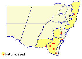 Distribution and occurrence: often cultivated as an ornamental, occasionally naturalised, including gullies in the Blue Mountains and disturbed sites in the Southern Highlands. Native to western North America. Naturalised plants have been recorded growing on roadsides, in paddocks, pine plantations, disturbed sclerophyll forest or woodland, rainforest, riverbank scrub.