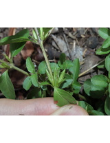 Description: Perennial herb with weakly developed rootstock, basal part of stems creeping and rooting, apical part decumbent to ascending or erect; stems up to 65 cm long, glabrous to sparsely puberulous.