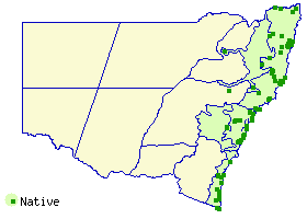 Distribution and occurrence: Grows in wet sclerophyll forest and on margins of rainforest; from Mt Warning to Ulladulla district.