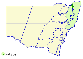 Distribution and occurrence: Restricted to Boonoo Boonoo-Bald Rock area (near Tenterfield) of NT; Queensland. Grows in sclerophyll forest, in sheltered sites amongst granitic boulders and along creek lines.